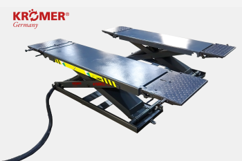 Die Scherenhebebühne eignet sich sehr gut für Arbeiten unter dem Fahrzeug und für Achsvermessungen. Wir bei Krömer bieten mobile Kurzhub Scherenhebebühnen, Doppelscherenhebebühnen und Annahmebühnen an.